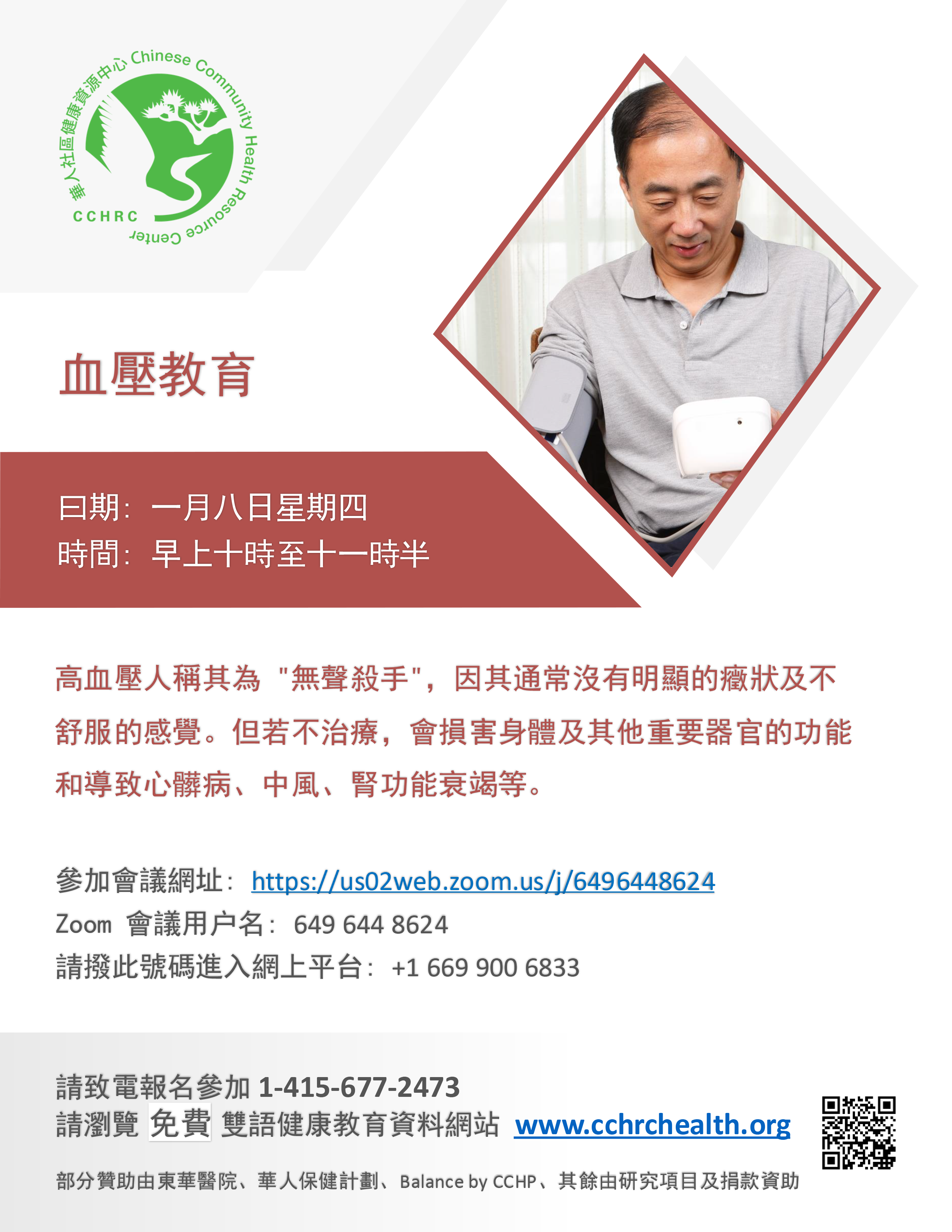 If you would like to join Blood Pressure seminar as shown below, please click on the Zoom link provided here: https://us02web.zoom.us/j/6496448624 on Thursday, January 8 at 10:00 am to 11:30 am.
