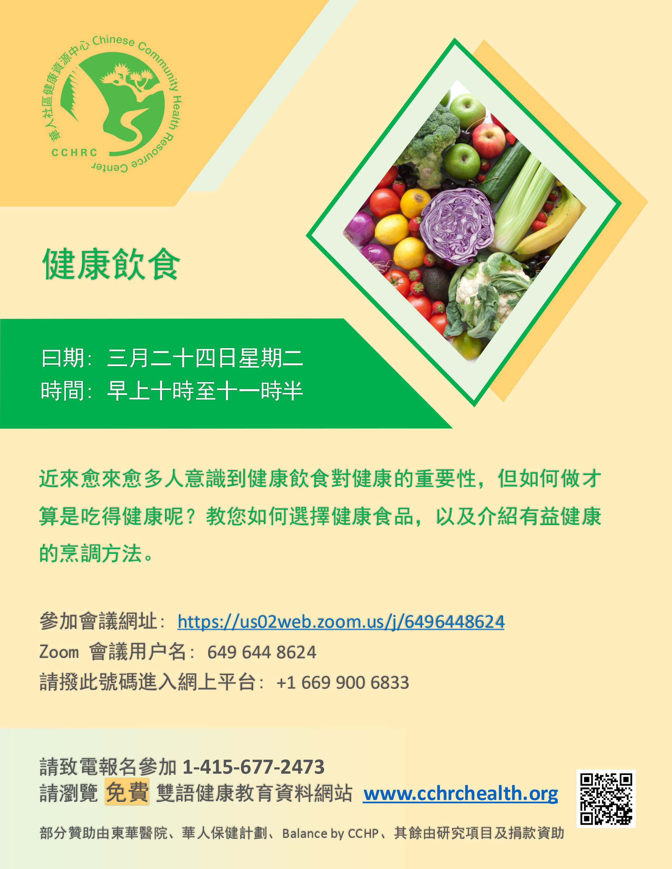 If you would like to join Healthy Eating seminar as shown below, please click on the Zoom link provided here: https://us02web.zoom.us/j/6496448624 on Tuesday, March 24 at 10:00 am to 11:30 am.