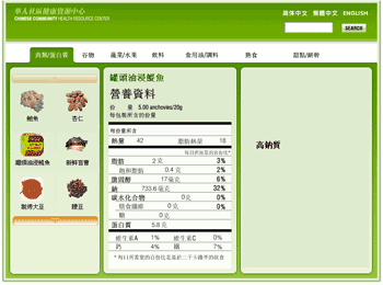 首先瀏覽目錄或在右上方 “搜索” 方格裏打出主詞 來查索。 當您點擊食物樣本,會出現以下三種情形: